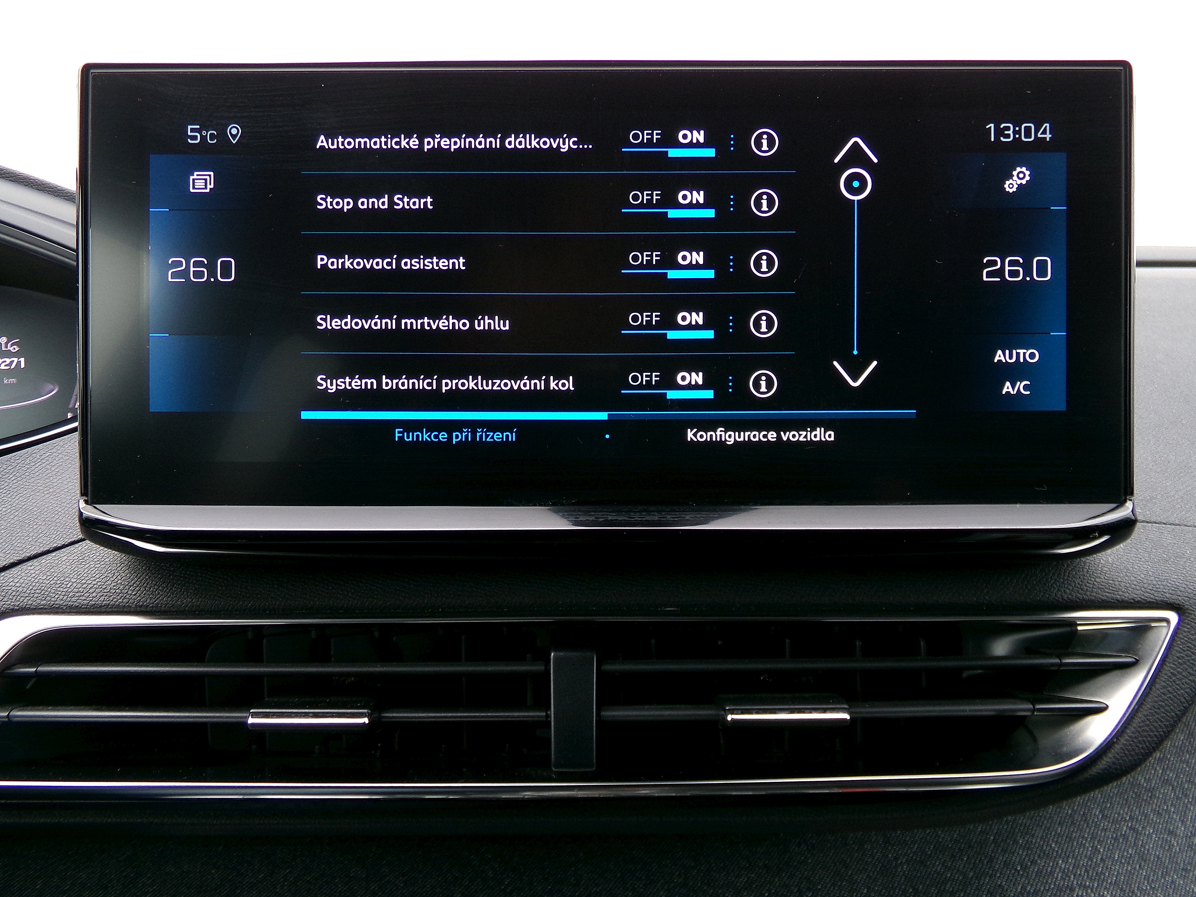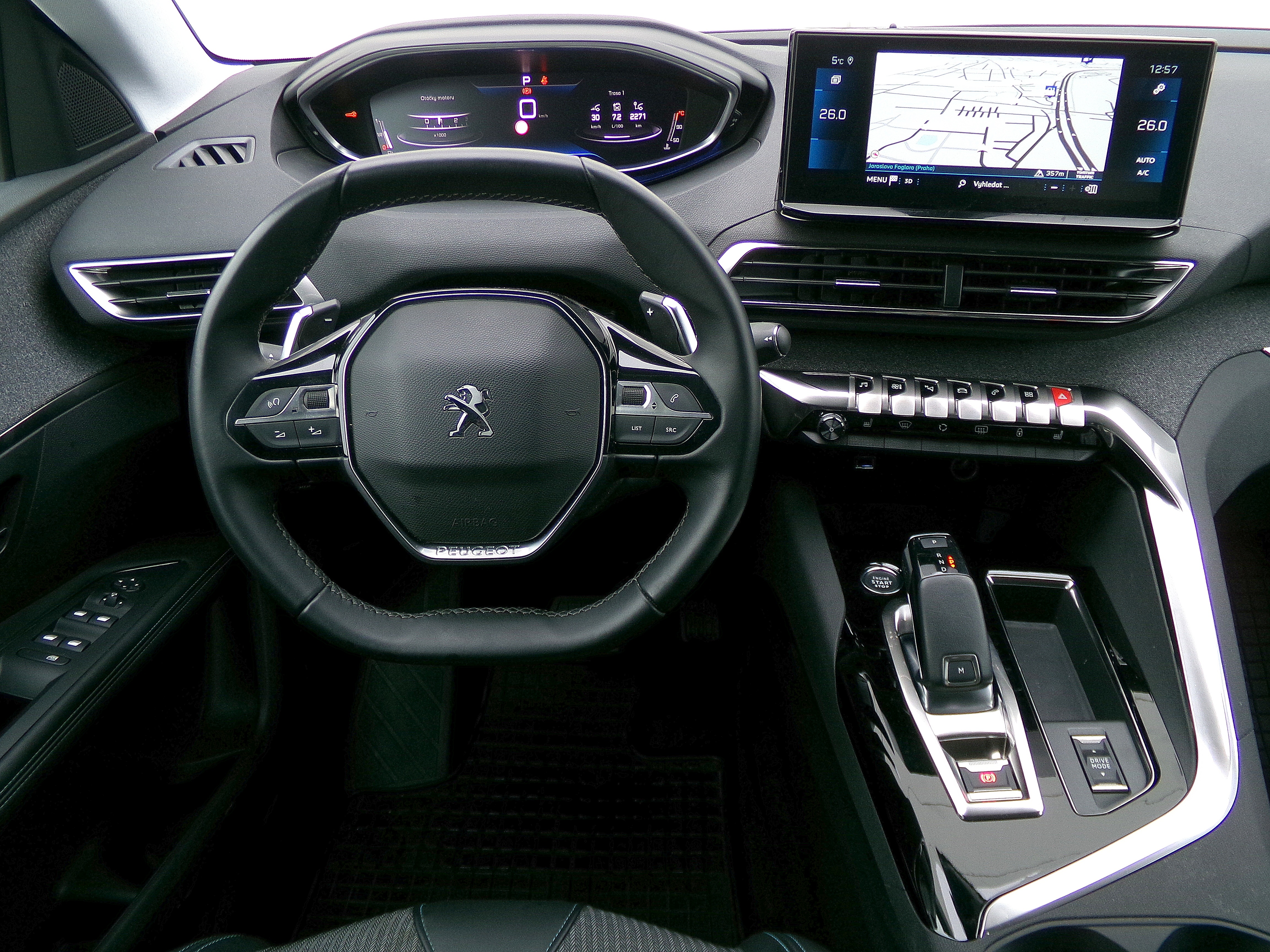adaptivní tempomat, multifunkční volant, nastavitelný volant, palubní počítač, posilovač řízení, startování tlačítkem, kožený volant