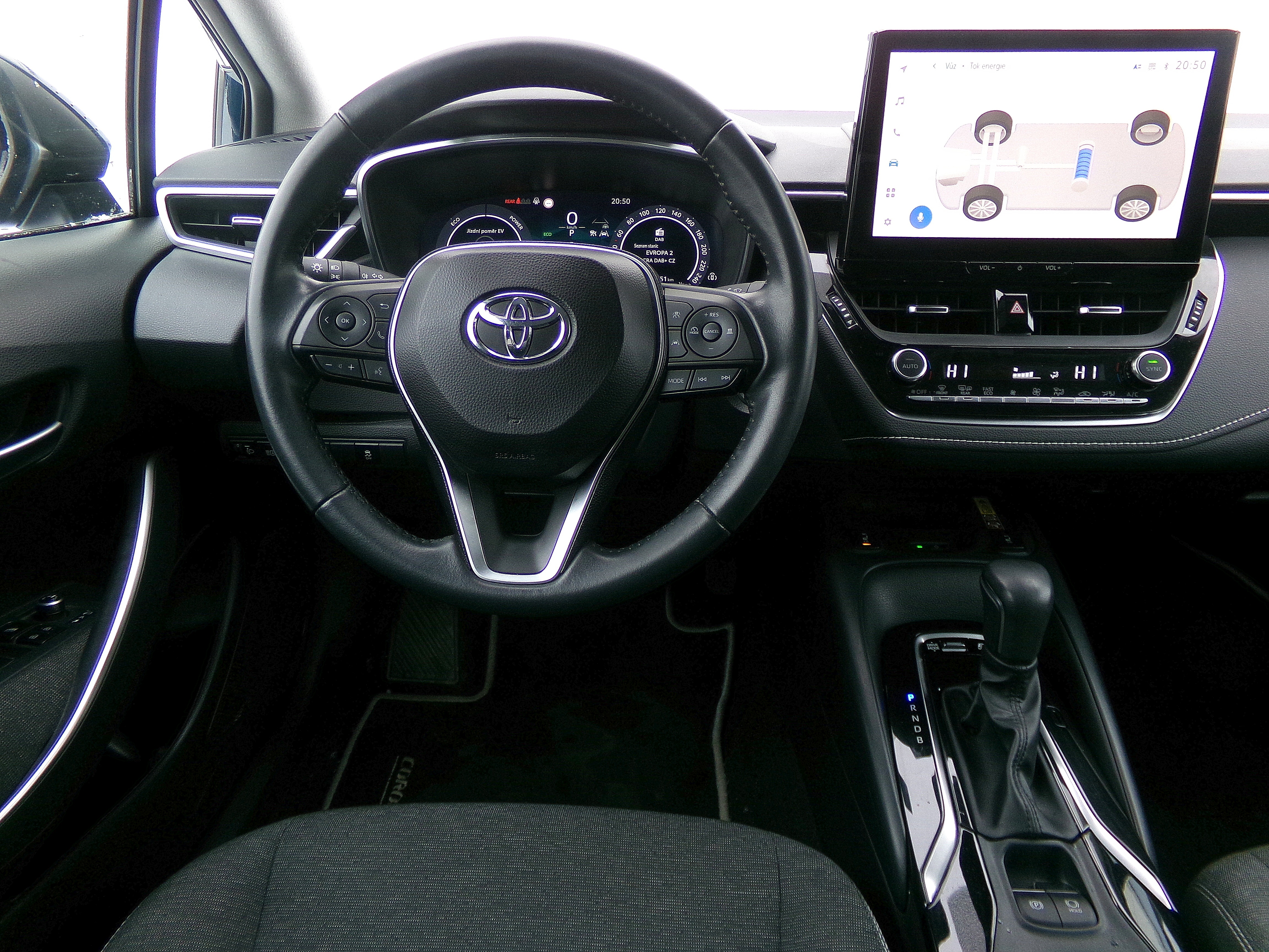 venkovní teploměr, dešťový a světelný senzor, hlasové ovládání, bezdrátová nabíječka mobilních telefonů, ukazatel rychlostního limitu (SLIF), Android Auto, Apple CarPlay, volba jízdního režimu